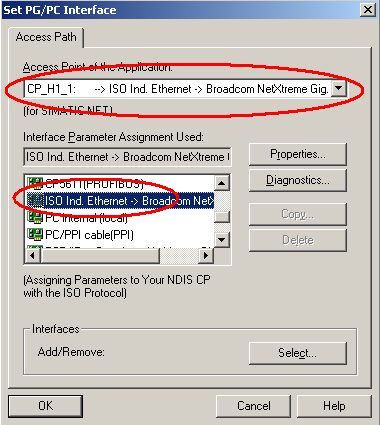 在如图4.7所示的情况下,在Interface Parameter Assignment Used:选择ISO Ind Ethernet->实际网卡的名称。